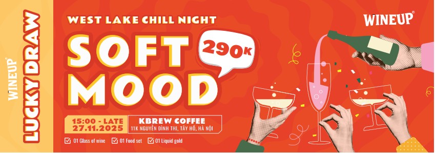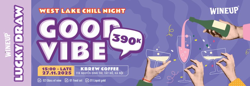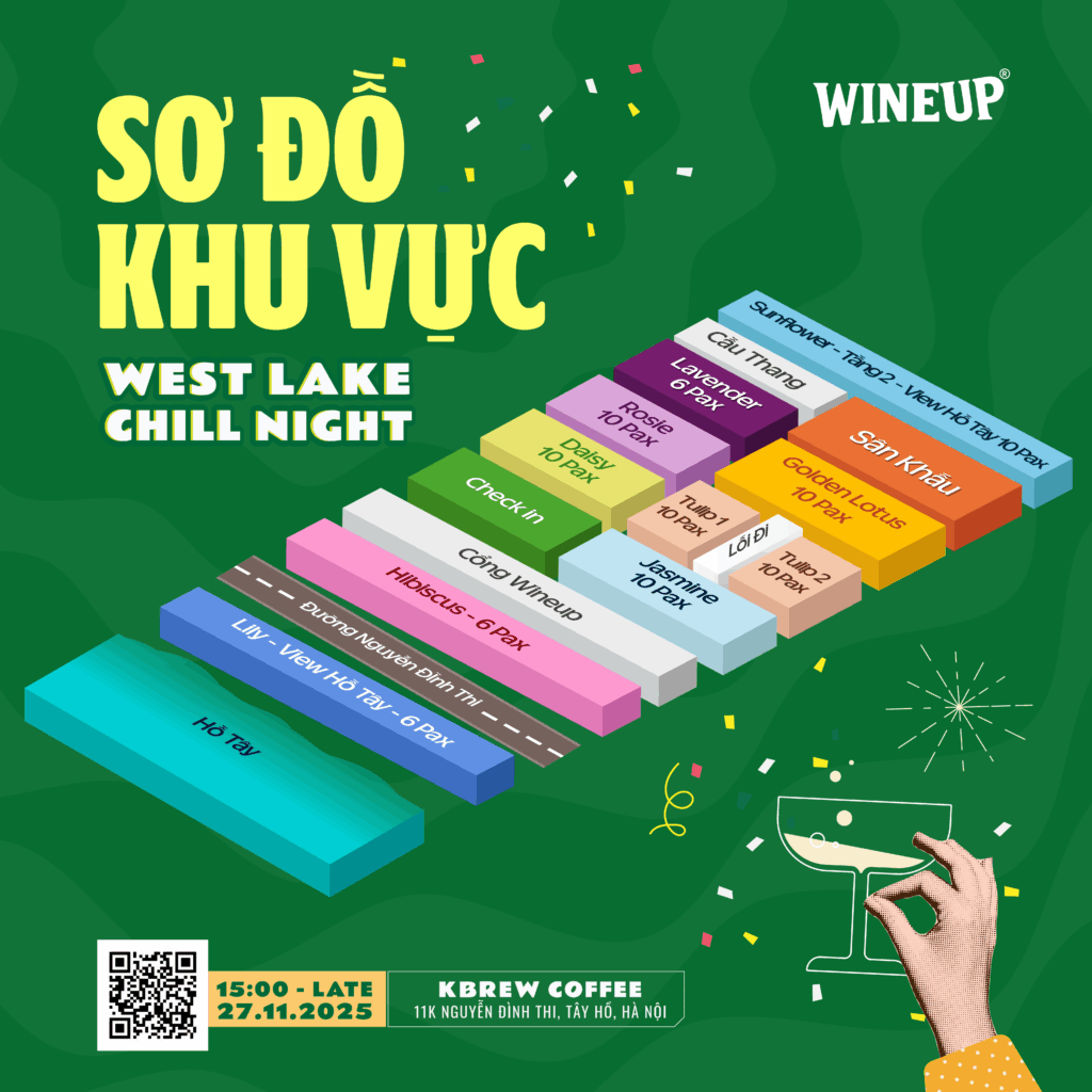 Wineup là một lễ hội rượu vang mang đến trải nghiệm đường phố cao cấp, nơi âm nhạc, ẩm thực, rượu vang và cộng đồng hòa quyện bởi niềm vui khám phá. Mỗi tháng, Wineup mang đến một địa điểm mới, biến nơi đó thành sân khấu cho hành trình rượu vang độc đáo, với rượu vang được lựa chọn từ khắp nơi trên thế giới. Hãy để Wineup trở thành người dẫn lối cho những khoảnh khắc khó quên. Và lần này, Wineup đã đến Hồ Tây mang theo gió, không gian, rượu vang, ẩm thực, âm nhạc sôi động của tuổi trẻ. Hãy tìm hiểu thông tin dưới đây và đăng ký ngay vì số lượng vé có hạn.